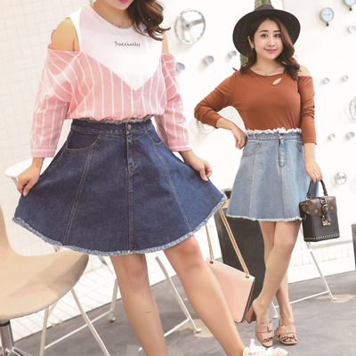 大码女装_xxxxl女装半身裙韩版纯色牛仔裙