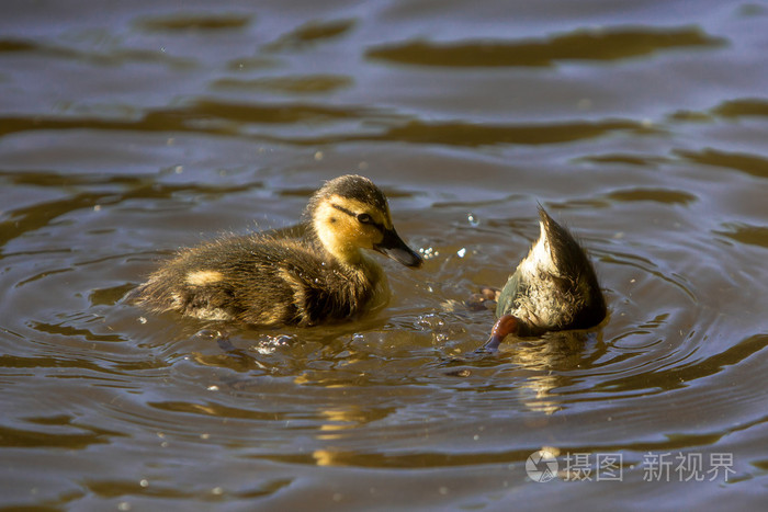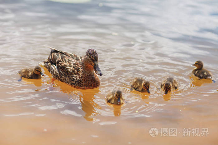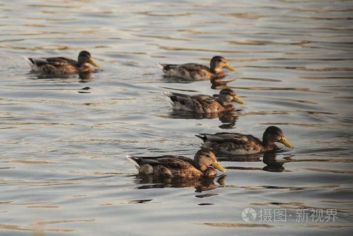 池塘里游泳的小鸭子摄影图__家禽家畜_