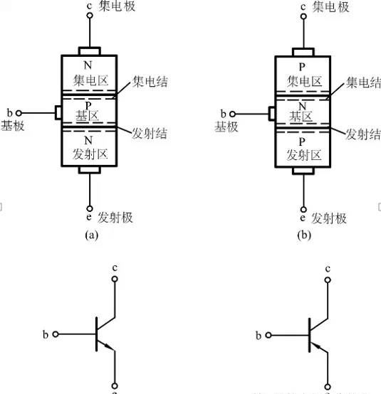 了解三极管工作原理前,先看一张三极管内部结构原理图;从图中可以清晰的看出NPN和PNP内部结构的区别。三极管NPN型和PNP型的工作原理:NPN