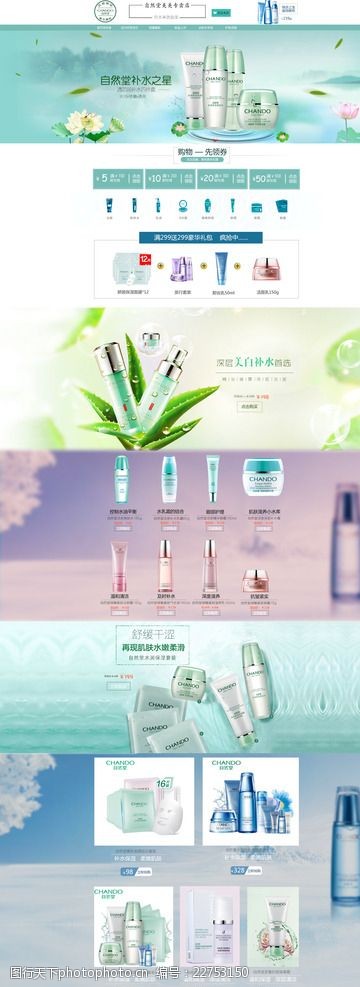 包图网提供精品模板下载,本设计作品为天猫化妆品无线端装修淘宝手机端首页模板,格式:PSD,像素:608x3583,分辨率:72,下载即可获得源文件,作品