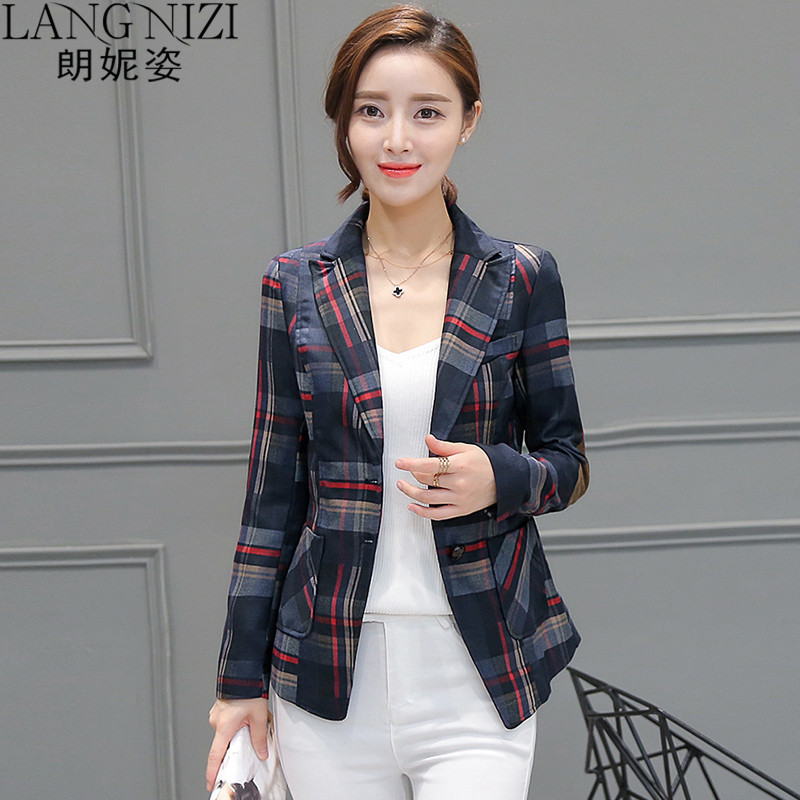女装格子小西服长袖休闲西装外套女短 .