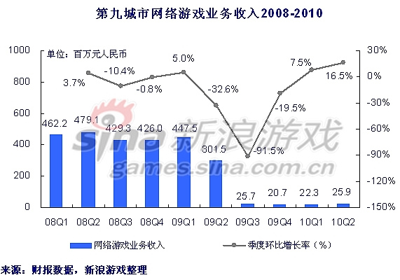 九城营收环比增长率呈深V