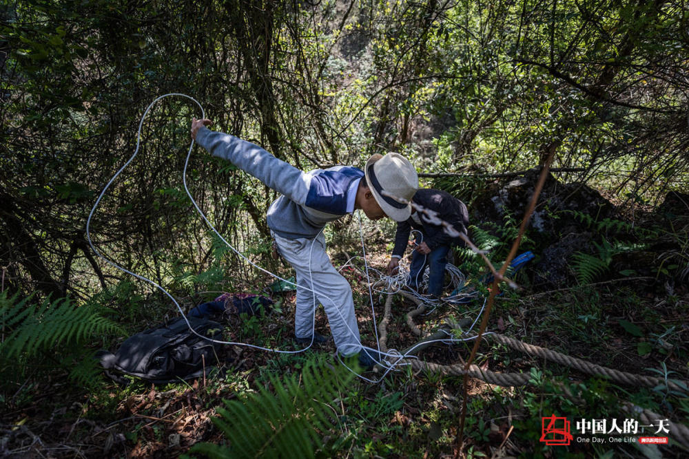 采蜜人与几万只黑大蜜蜂高空共舞 开工前