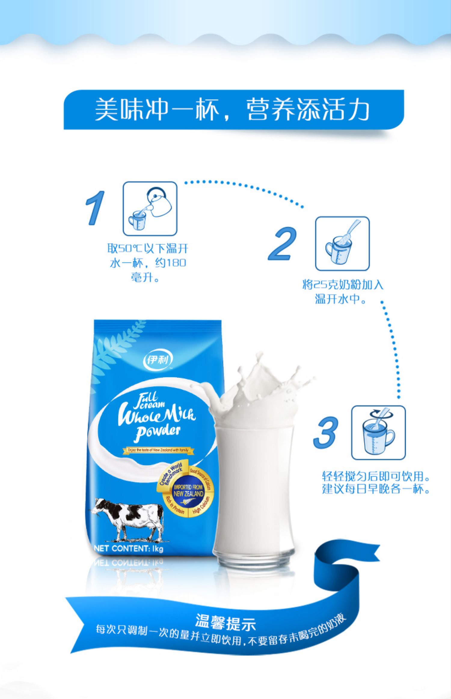 伊利新西兰进口全脂奶粉1kg成人学生成年