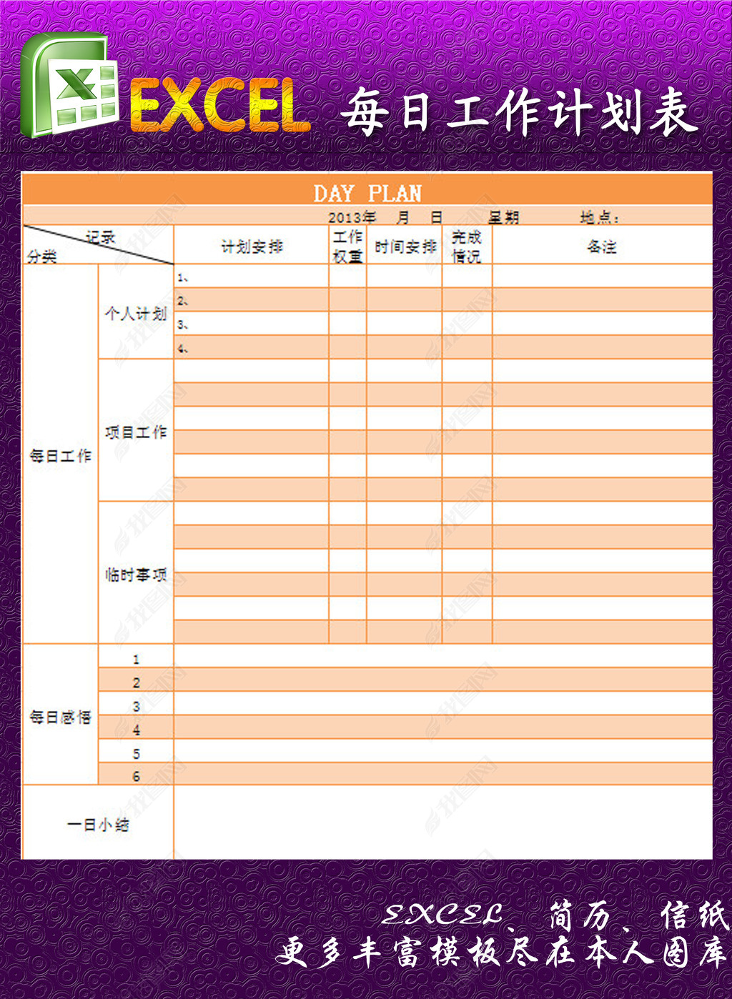 每日工作计划表模板——所有资料文档均为本人悉心收集,全部是文档中的精品,绝对值得下载收藏! 文档格式: .xls 文档页数: 10页 文档大小: 0.0K 文档热度: 文档分类: 待分类 文