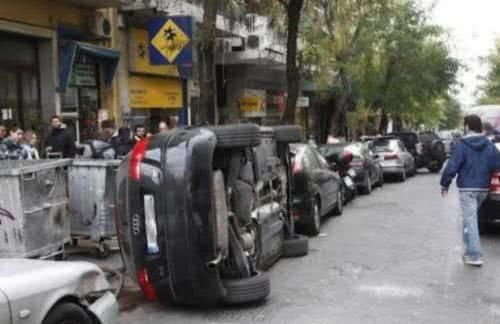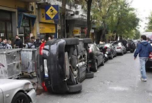 奥迪乱停车,打电话还拒接,路人发怒掀翻,