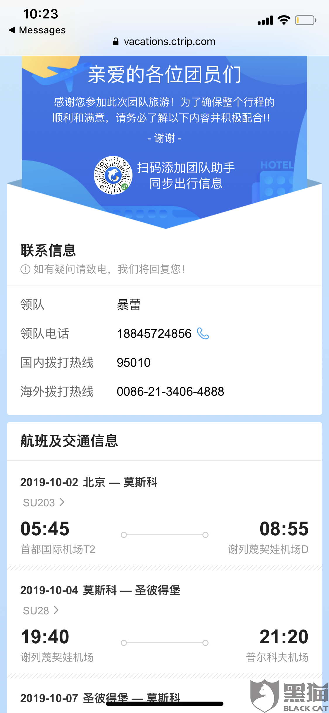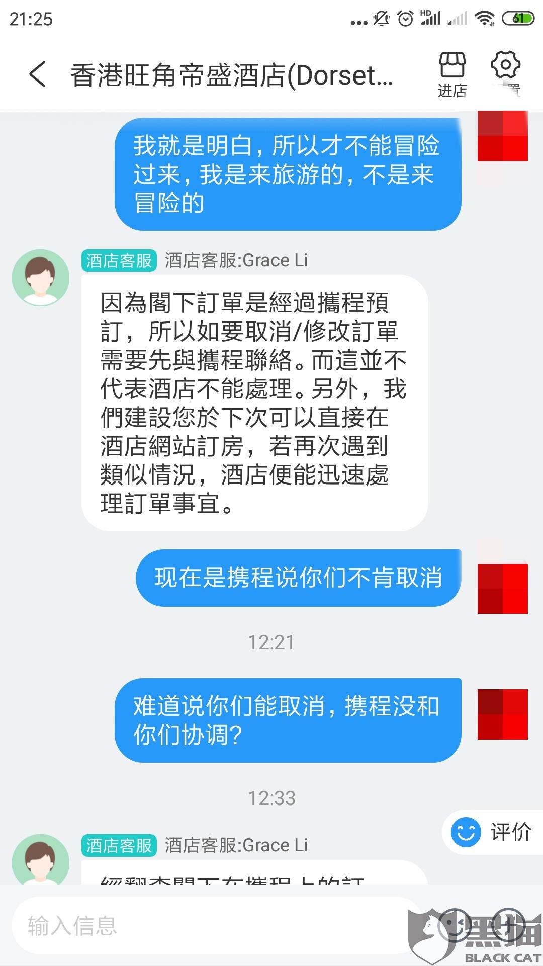 黑猫投诉:携程客服告知错误信息导致我