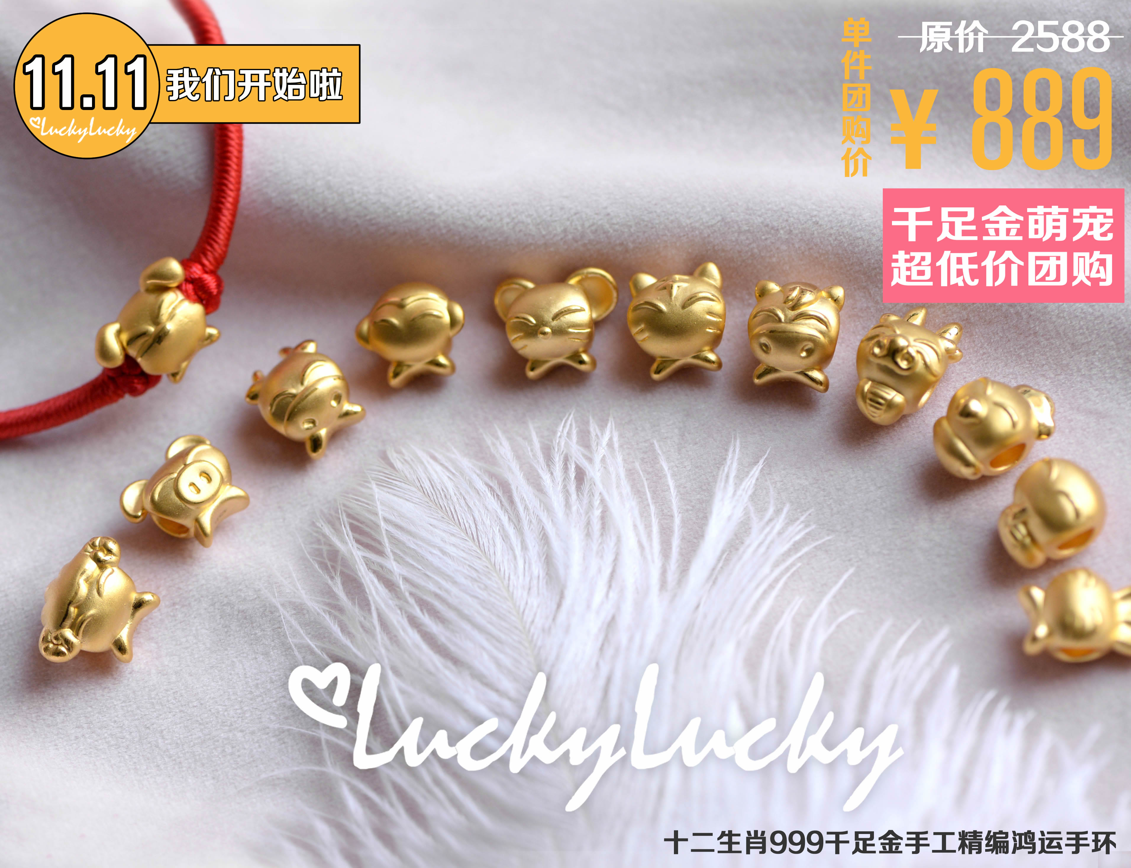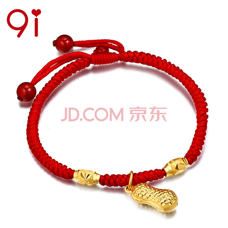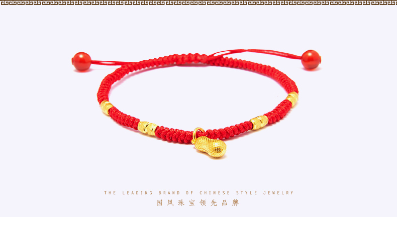 9i 9i 999千足金黄金转运珠手链红绳花生