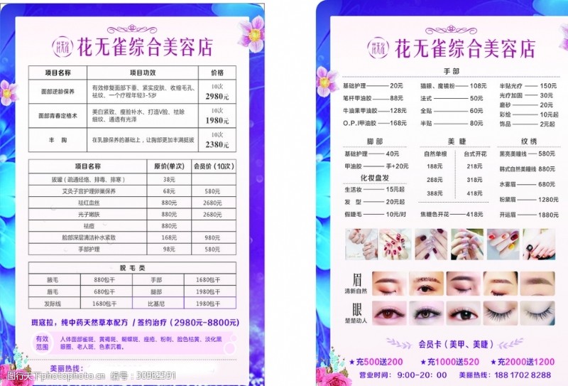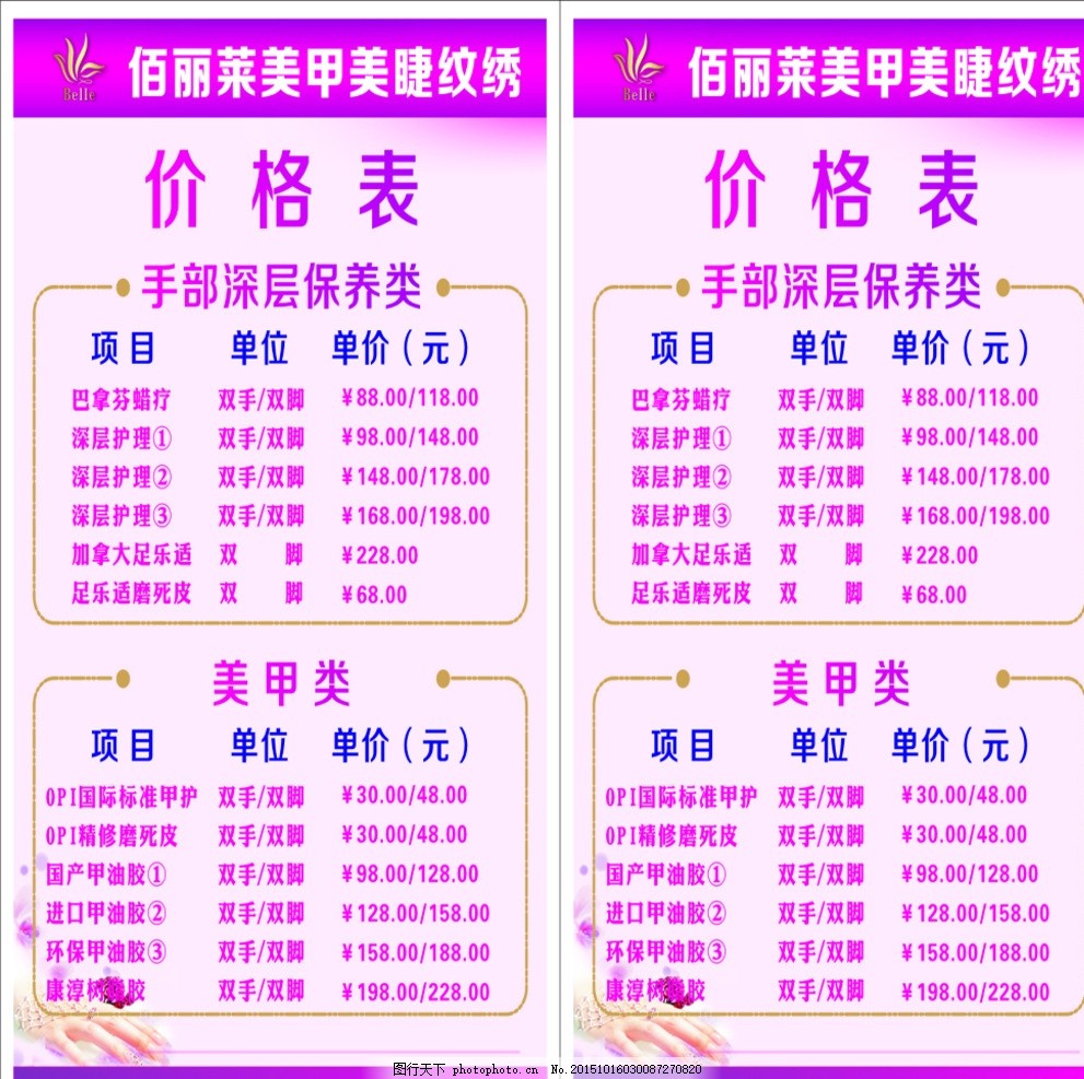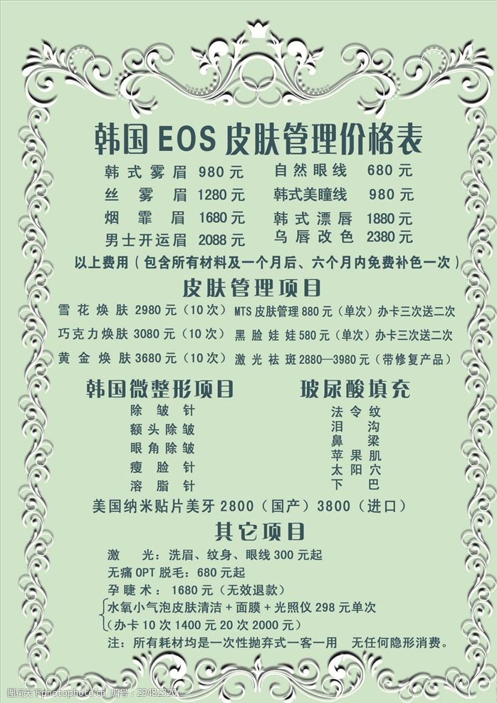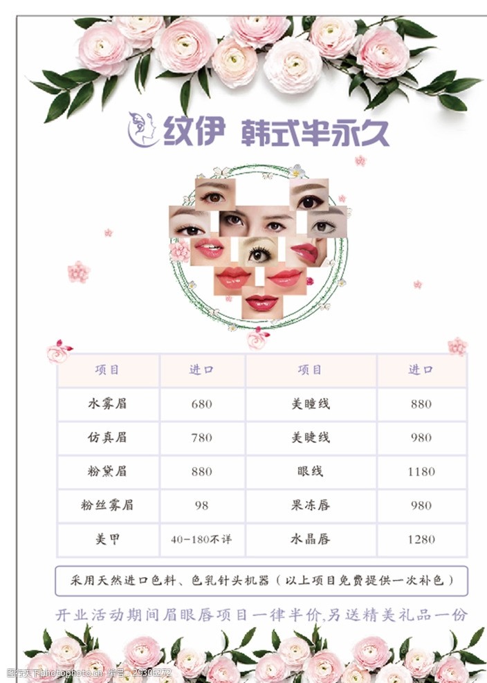 纹眉 漂唇价格表设计图__PSD分层素材_