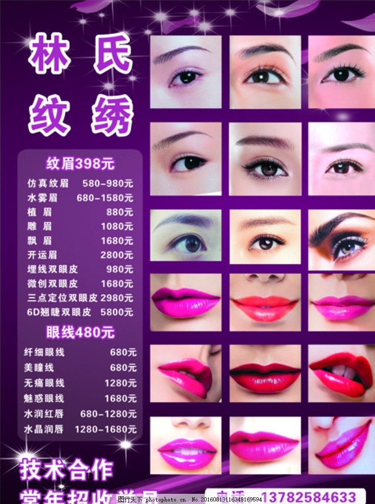 纹绣 海报 纹眉 嘴唇 价格表 紫色 广告设计