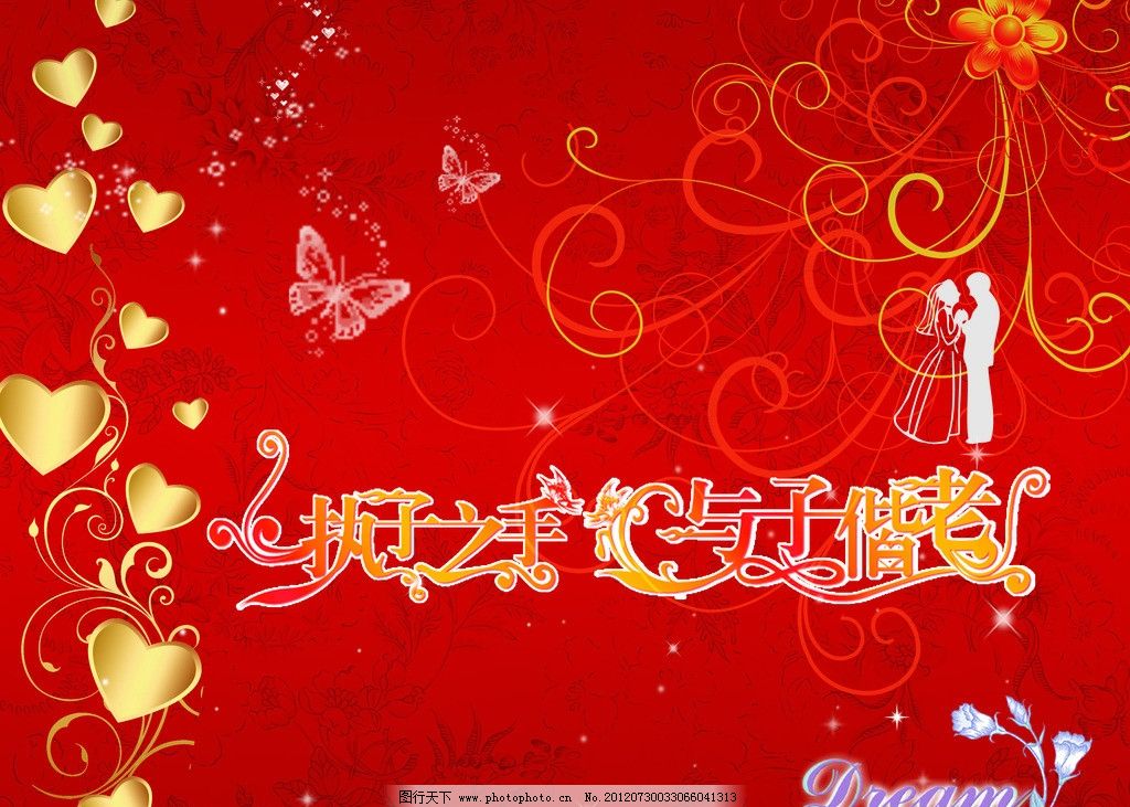 结婚素材 执子之手 与子偕老 花纹 梦 英文 心 红