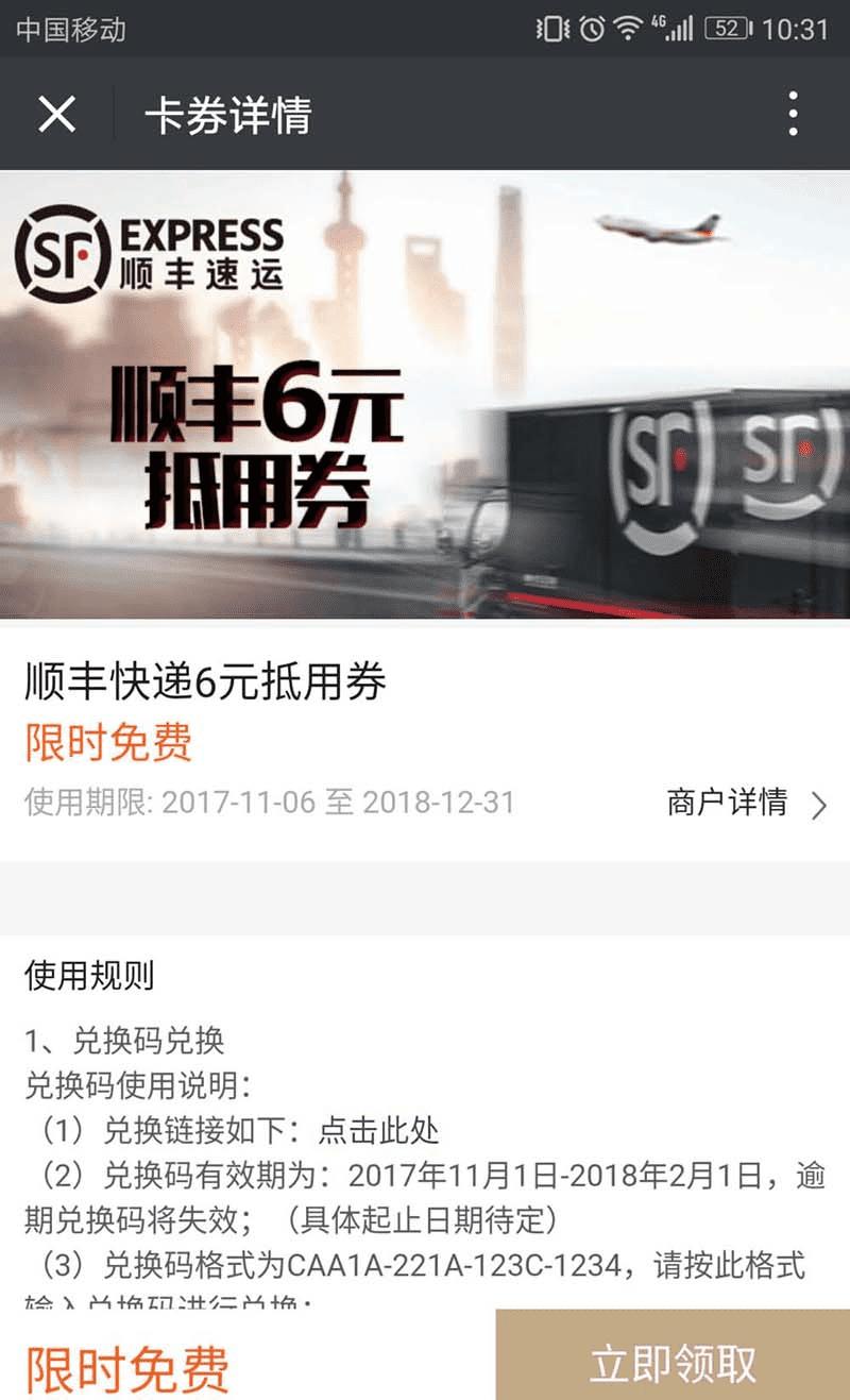 打开活动地址即可可免费领取顺丰快递优惠券,具体的使用规则参考对应的活动规则即可! 福利巢提示:测试领取成功,但是具体能不能全国线上支付就只能自己测试了! 喜欢淘宝购