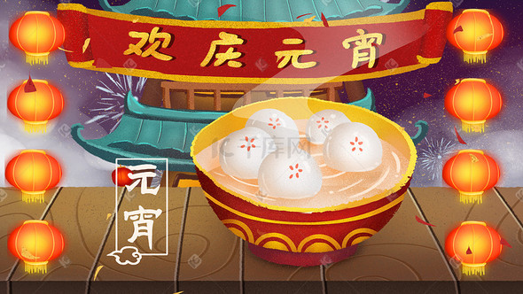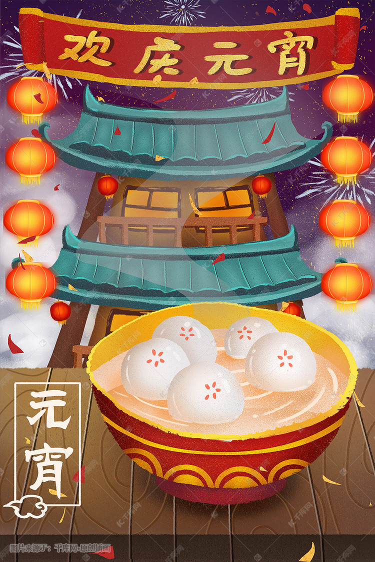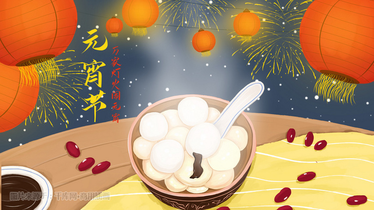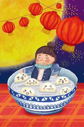 元宵节幸福过年春节吃汤圆吃元宵插画图片