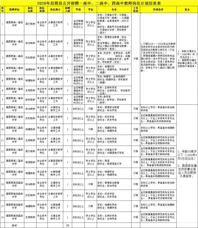 2020辽宁铁岭市昌图县招聘教师23人公告