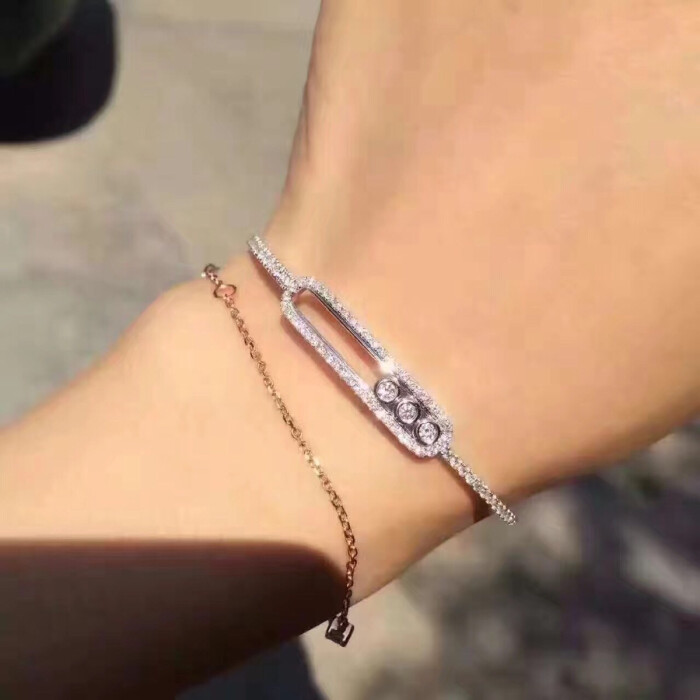 梅西卡双链手链 最新的潮流 中间钻石可…-堆糖,美好生活研究所