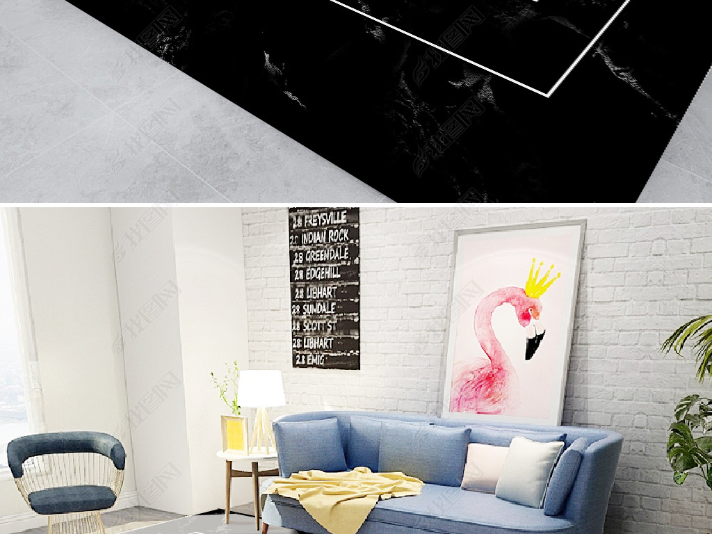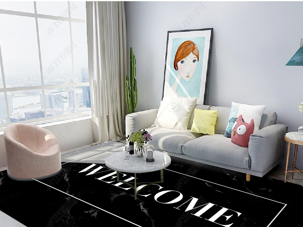 北欧现代轻奢简约爵士白大理石英文客厅地毯