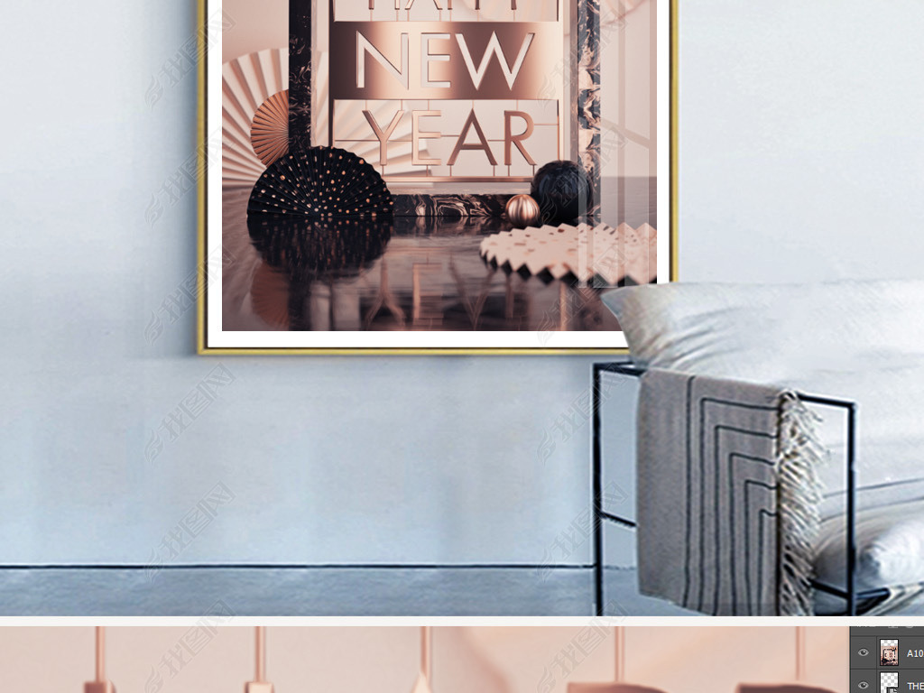 现代轻奢金色舞台英文几何模型创意装饰画