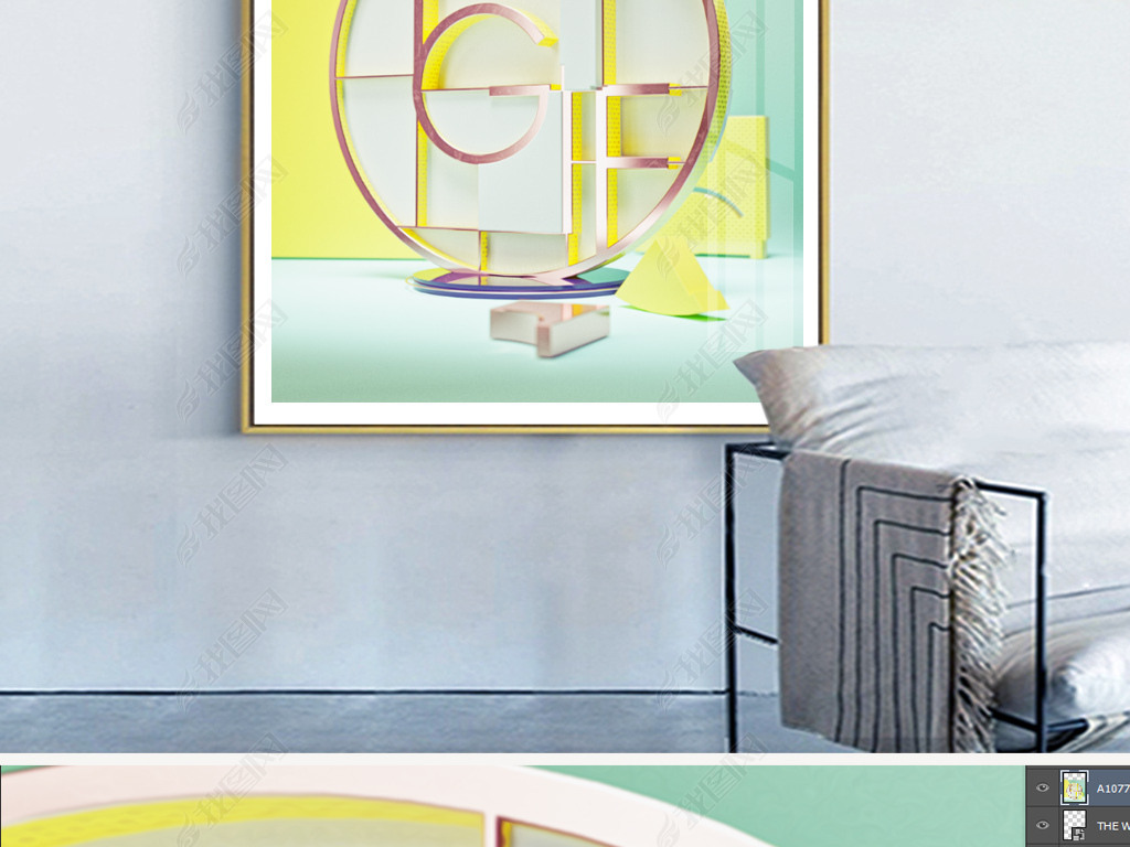 新现代轻奢色块英文几何模型建筑创意装饰画