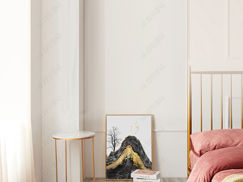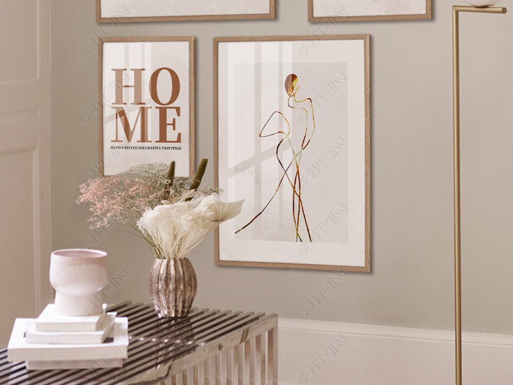 抽象北欧ins轻奢装饰画简约金山时尚英文