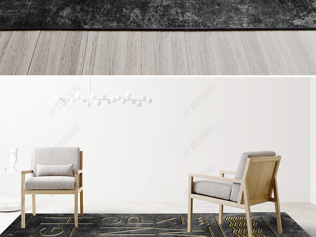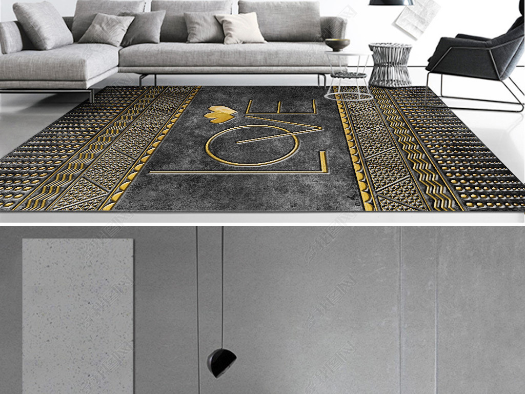 北欧现代轻奢简约黑金沙大理石英文客厅地毯