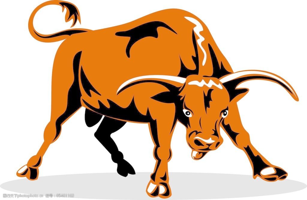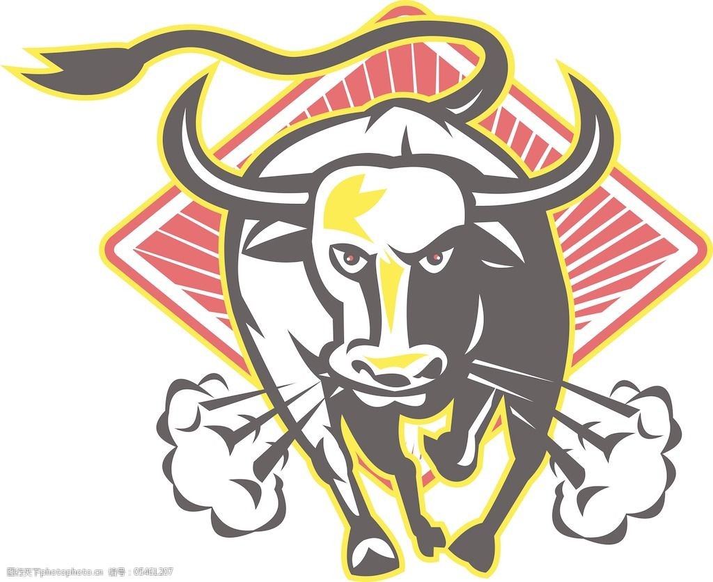 愤怒的公牛攻击复古矢量图免费下载-千图