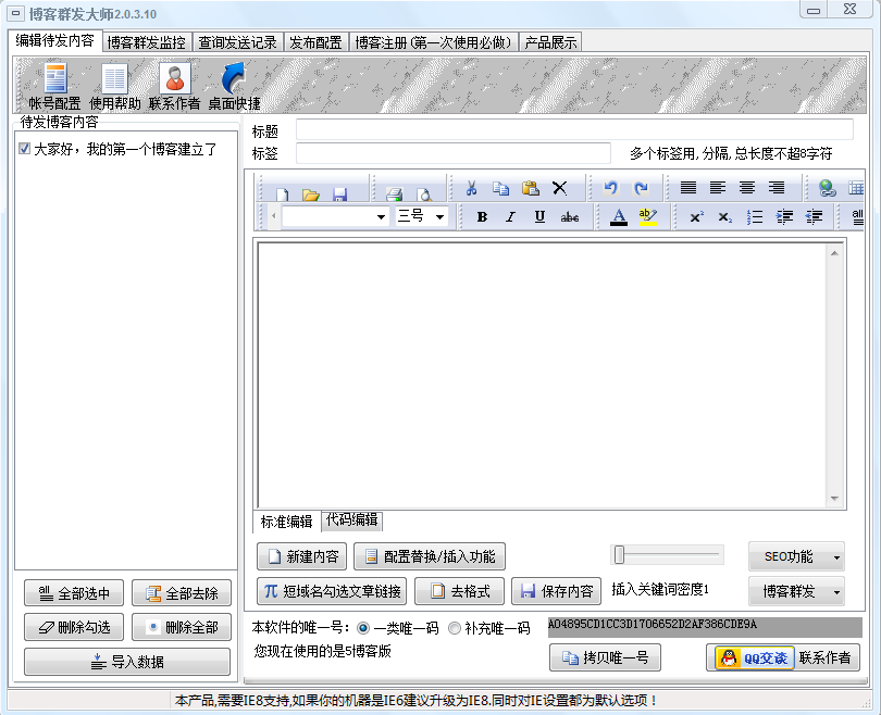 博客群发大师(多内核博客群群发软件) 2.0.8