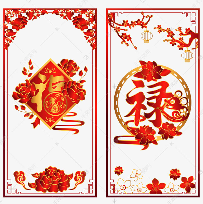 贴纸年货 红色吉祥福禄 30*30 CM一份两张