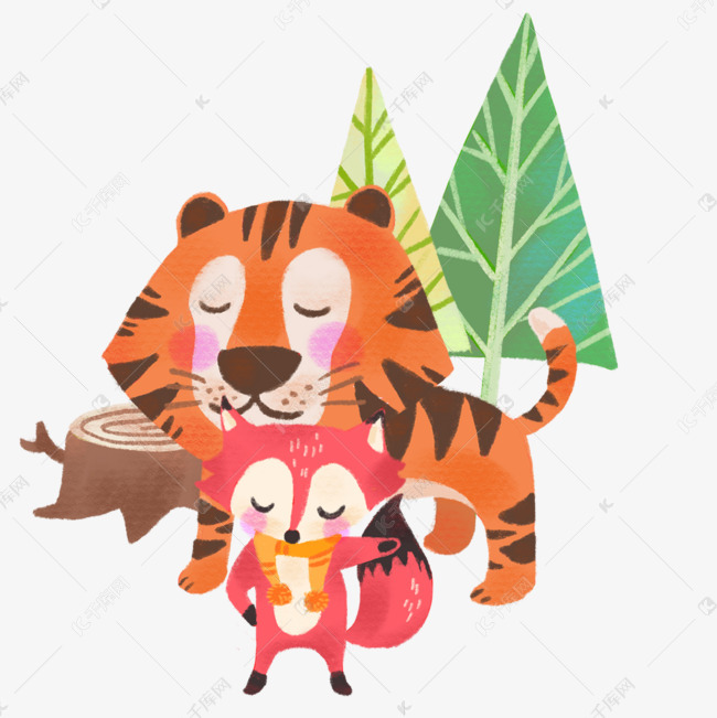 手绘老虎和狐狸 狐假虎威