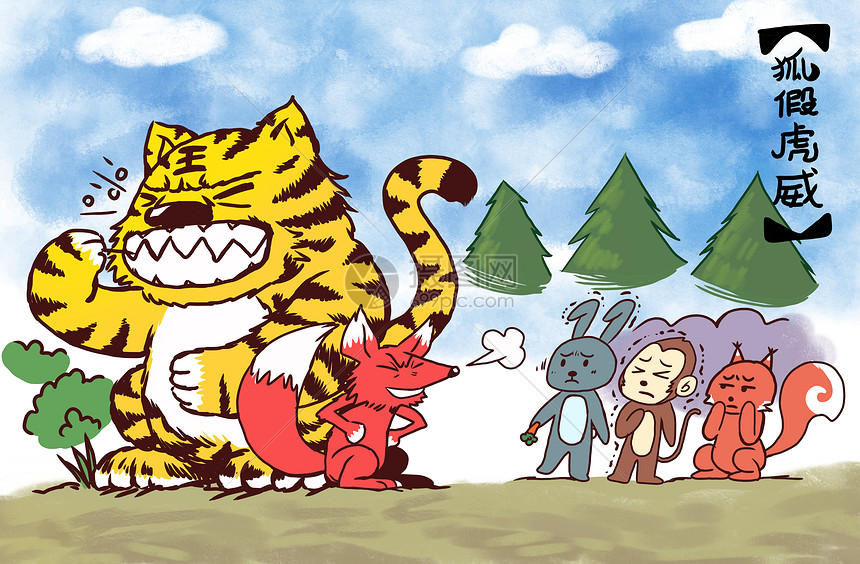 狐假虎威插画图片下载-正版图片401059874