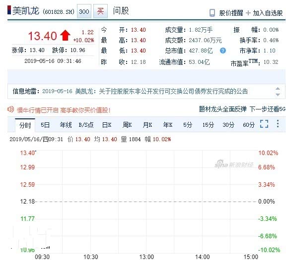 获阿里巴巴投资 美凯龙开盘涨停封单超110