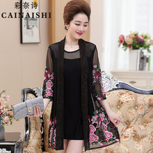 新款妈妈夏装中长款蕾丝连衣裙中老年女装夏季裙子长袖打底衫女