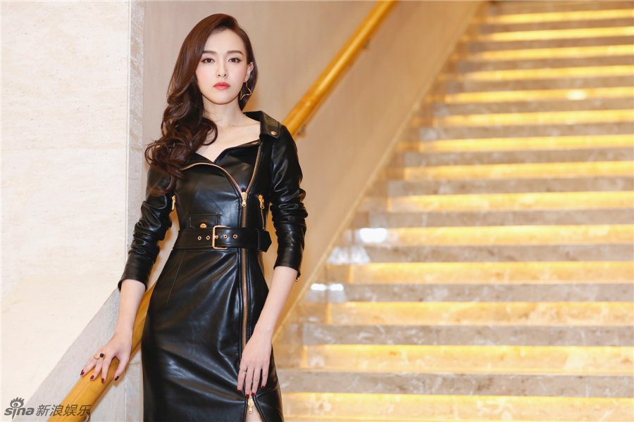 唐嫣高开叉秀长腿 黑色皮裙变攻气御姐