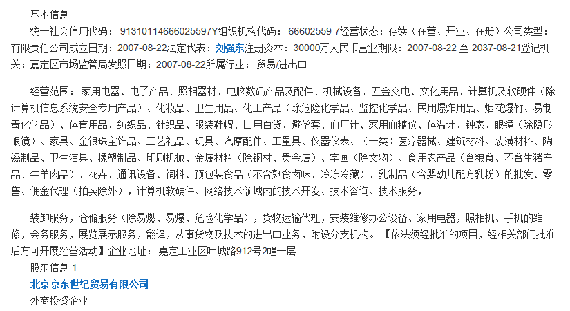 京东旗下公司上海圆迈贸易新增汽车销售业务