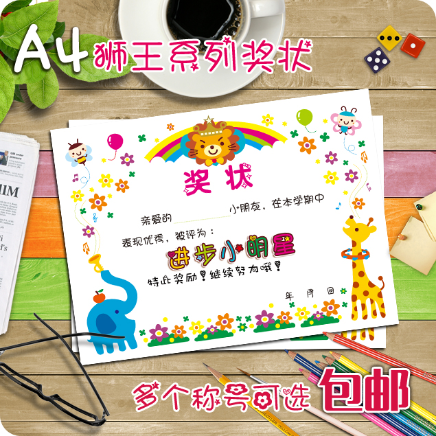 活力宝贝卡通彩色称号狮王奖状纸 幼儿园奖状纸 活力宝宝奖状