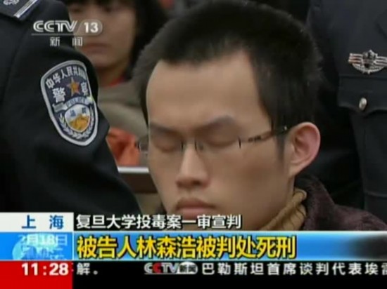 复旦大学投毒案一审宣判:被告人林森浩死刑