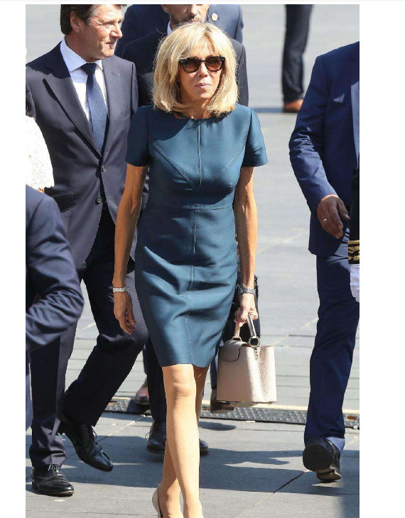 配高跟鞋尽显纤细,难怪马克龙这么爱她!