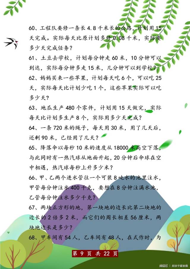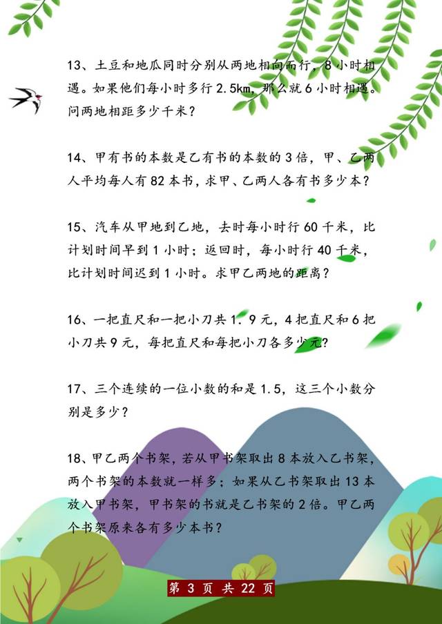 五年级上册方程应用题