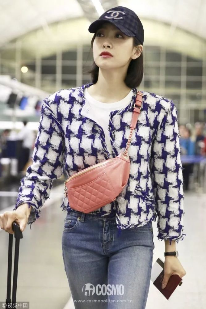 江疏影太豪气,身披香奈儿气质小外套,眼镜