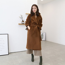 韩国2015秋冬新款超长款羊毛绒大衣女