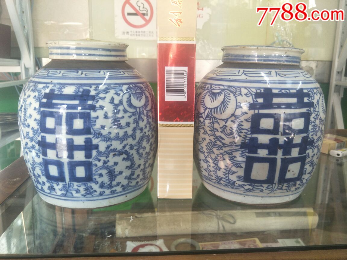 青花喜字罐一对 - 中华古玩网 - 古董收藏、古玩收藏、古玩鉴定、古玩拍卖、古玩论坛、古玩交易、古玩鉴赏、鉴宝、古董鉴定、古董拍卖的平台、华夏收藏、盛世收藏