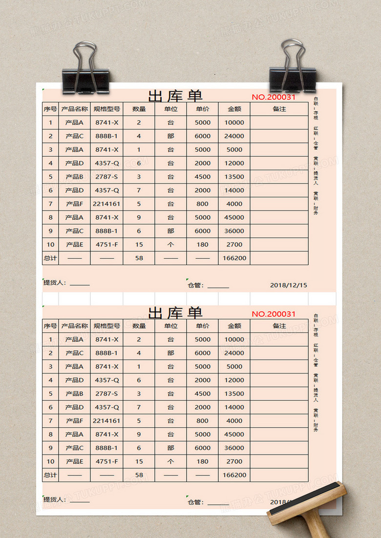出库单表格图片