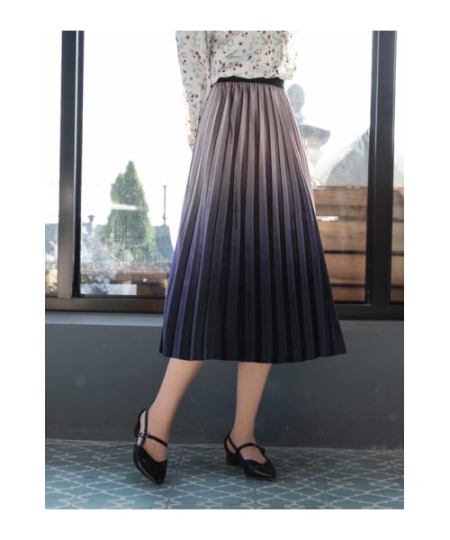 腰松紧渐层光泽丝绒百褶中裙- WEAR