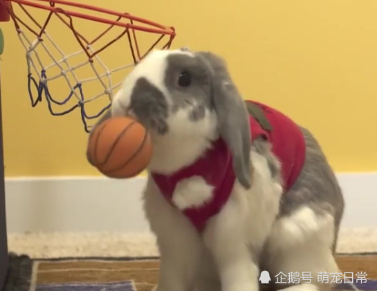 主人给兔兔买了个篮球架,原以为它不会玩,