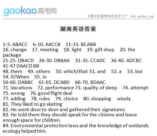 2014年湖南高考英语试题及答案