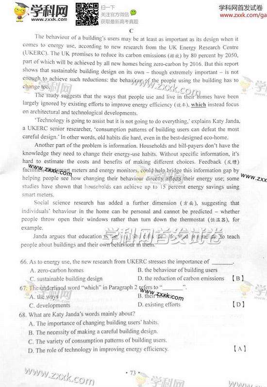组图:2017江苏高考试卷(英语)及参考答案
