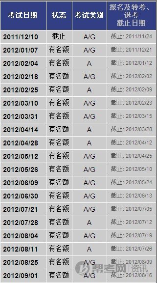2012年福建师范大学雅思考试时间安排表