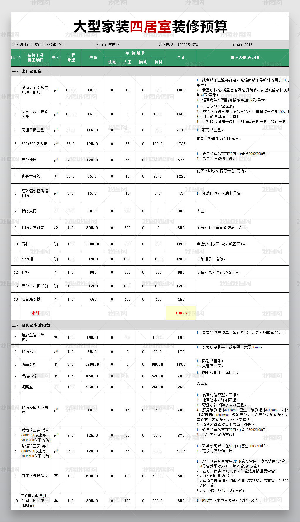 家庭装修预算表