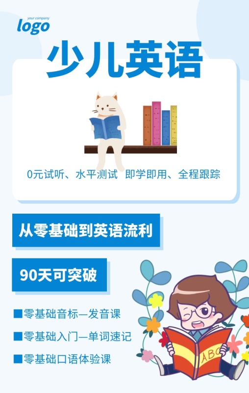 蓝色简约少儿英语宣传海报