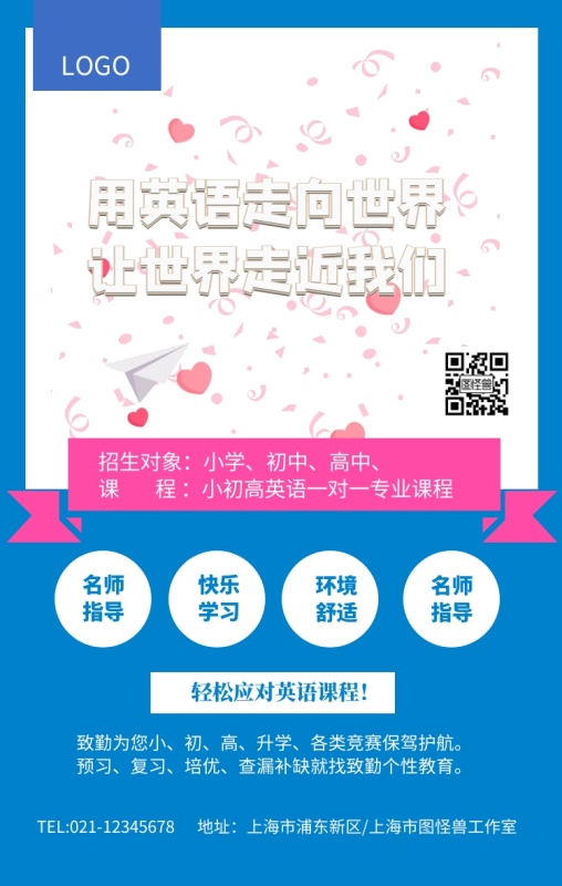 蓝色英语培训招生海报