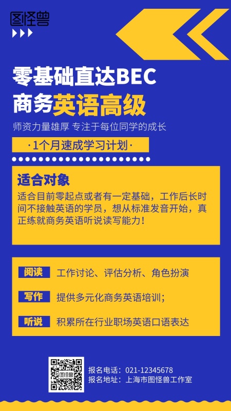 蓝色商务英语培训招生海报